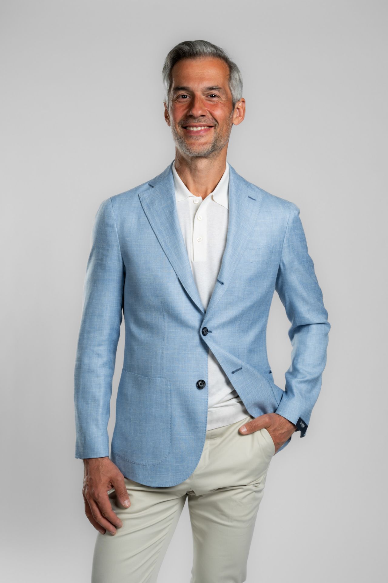 Barba Napoli sako od vune, lana i svile svijetlo plavi